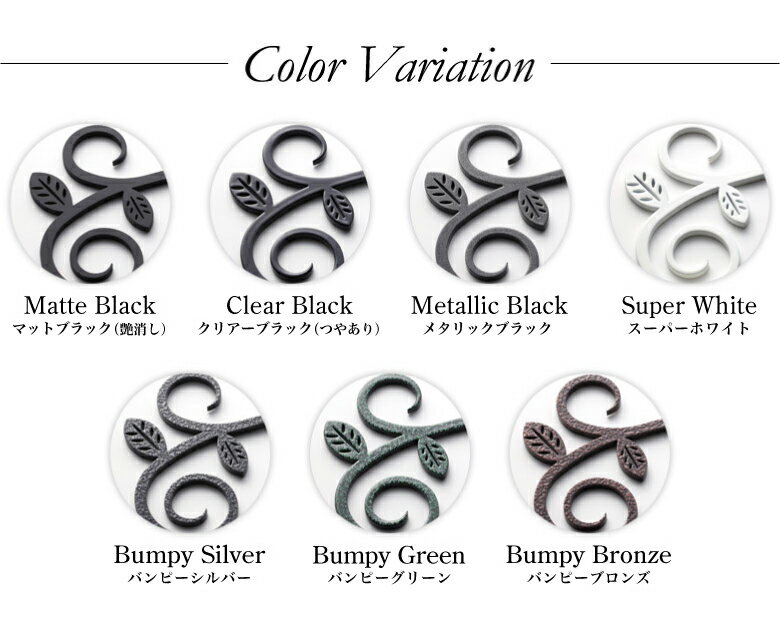 価格 9,200円(税別) カラー色 マットブラック・クリヤーブラック メタリックブラック・スーパーホワイト バンピーシルバー・バンピーグリーン バンピーブロンズ 取付方法 スペーサータイプ ネジ止め式 (取付け場所に、穴を開けます。
